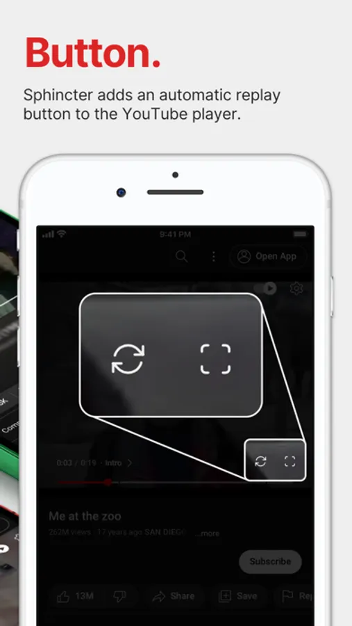 Sphincter adds an automatic replay (or loop) button to the YouTube player in your mobile Safari browser.