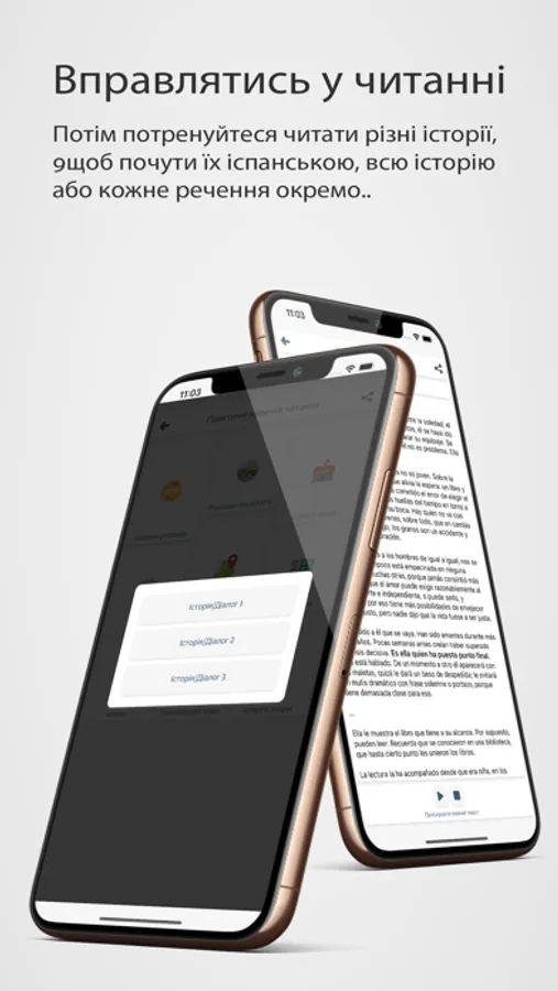 Потім потренуйтеся читати різні історії, щоб почути їх іспанською, всю історію або кожне речення окремо.