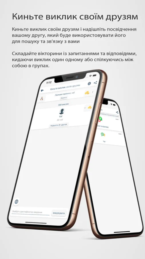 Створіть виклик і надішліть ідентифікатор своєму другові, який використає його, щоб знайти вас і зв’язатися з вами. Створюйте тести із запитаннями та відповідями в завданнях і кидайте виклик один одному або спілкуйтеся в групах.