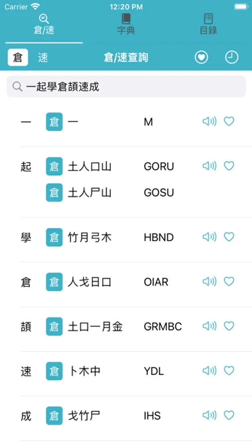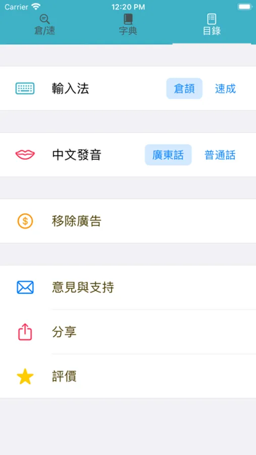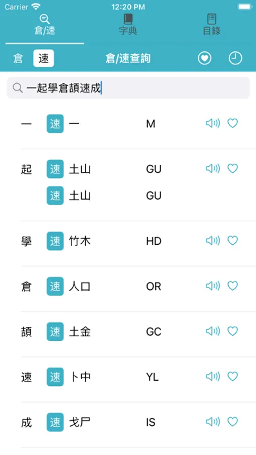 - 倉頡碼/速成碼查詢:本app提供了倉頡碼/速成碼字典,貼上中文漢字便能查詢倉頡碼/速成碼,讓使用者能夠快速掌握倉頡/速成輸入法。使用者可以透過多練習來加深對倉頡速成的掌握程度。