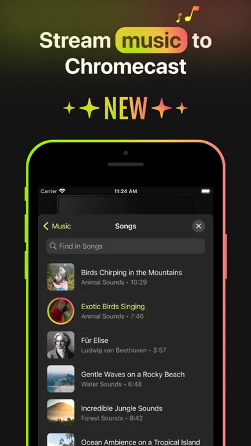 - Listen to music on your Chromecast-enabled TV or speakers.