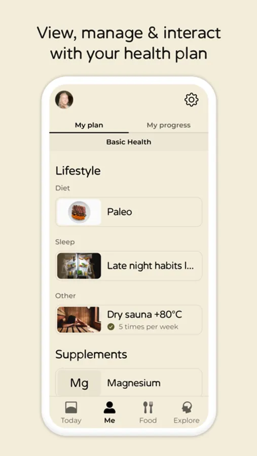 In the app, you will find detailed instructions and scientific information about different diets and associated food lists and recipes, as well as supplements, and other lifestyle changes. There are also broader educational materials that give you a better understanding of how you can effectively use diet, sleep, and stress management to improve your health.