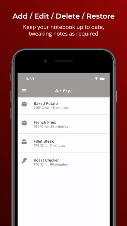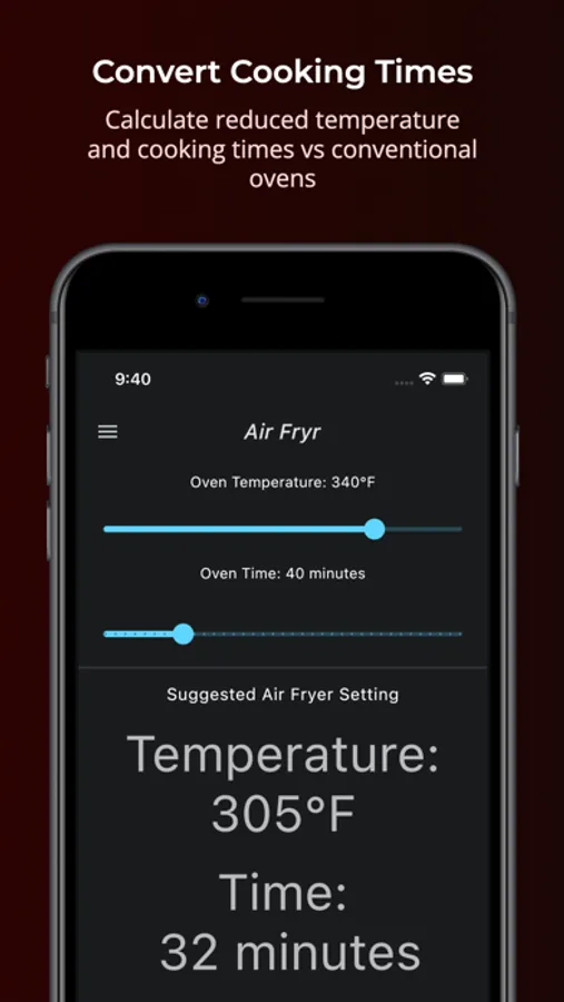 Use Air Fryr to calculate a reduced temperature and cooking time for dishes you would normally make in a conventional oven, and save notes in the notebook feature to come back to again and again!