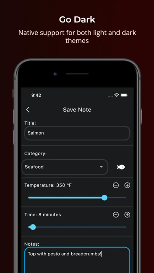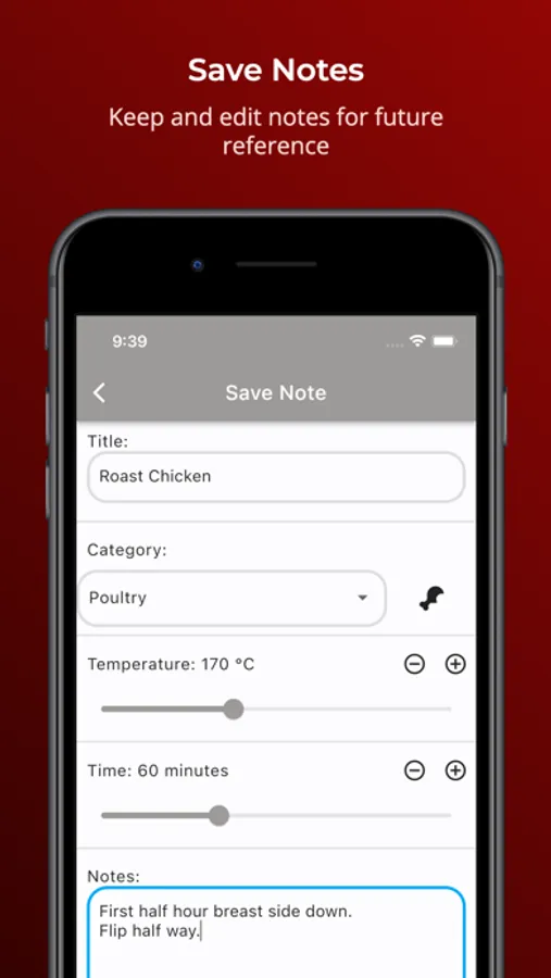 Once saved notes can be updated if you want to add more information or amend the cooking settings, or deleted with a simple swipe.
