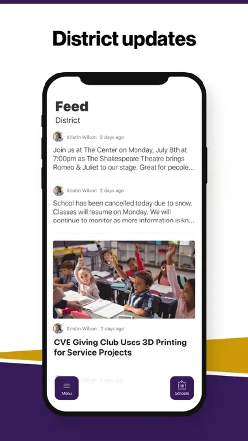 In the Live Feed is where you'll find updates from the administration about what's going on in the district right now. Whether that's celebrating a student's success, or reminding you about an upcoming deadline.