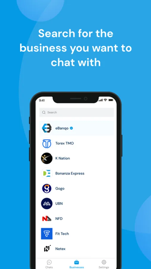 Chat with several businesses at the same time: Stay connected with your favorite businesses all at once from a single platform. Send and receive files, images and videos.