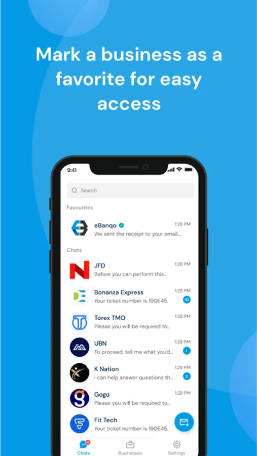 Mark businesses as favorites: You can organize your chat experience by marking businesses that you engage with regularly as “Favorites". This makes it easy to start a chat with them whenever it is necessary.