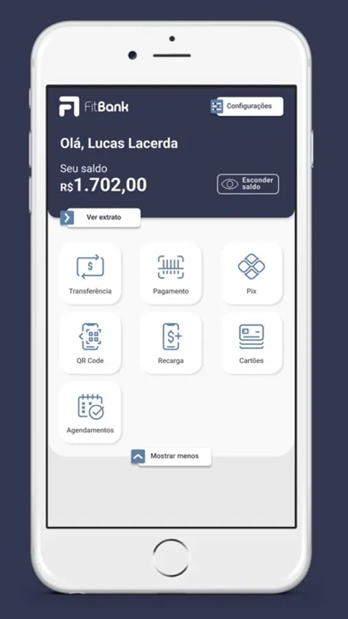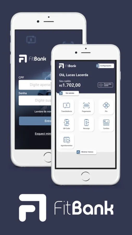 • Transferência interna a externa: faça movimentações para contas de demais bancos e entre contas FitBank.