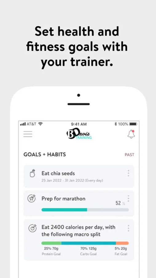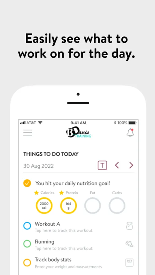 With the B Davis Training App, you will have access to workout programs designed specifically to help you reach your fitness and health goals! You can follow & track your workouts, your nutrition, your lifestyle habits, measurements and results–all with the help of your coach.