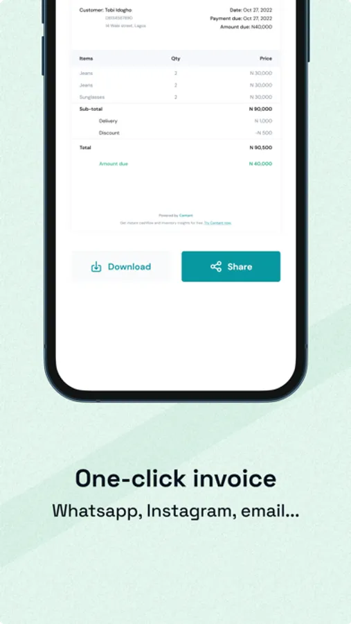 - Invoicing made easy: Send invoices quickly via Whatsapp, Instagram DMs, or email.