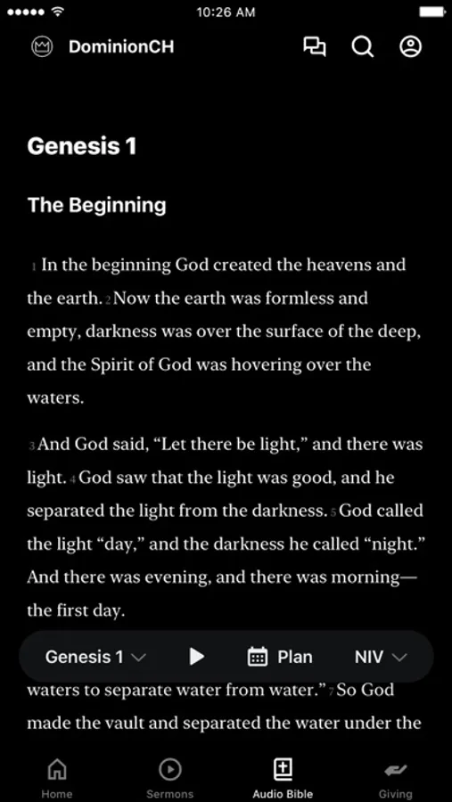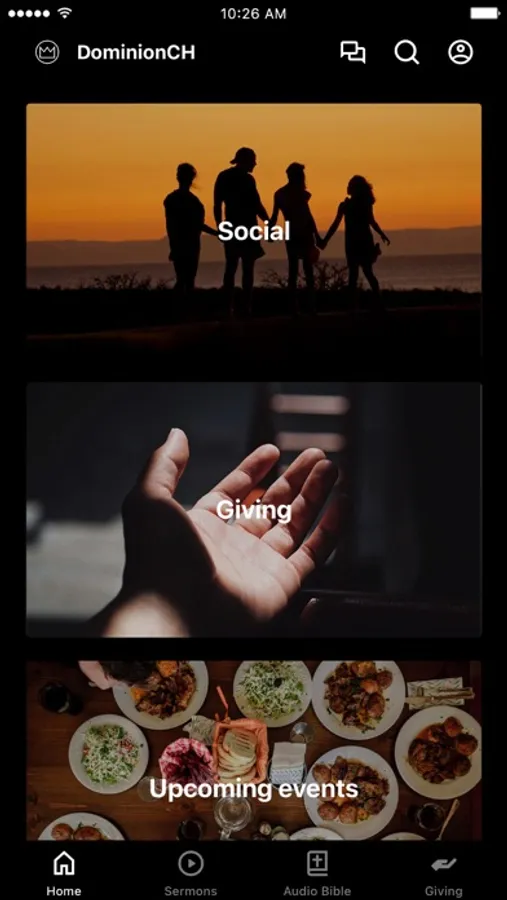 This app will help you stay connected with the day-to-day life of Dominion Church. With this app you can: Access our online Giving, watch or listen to past messages; stay up to date with push notifications; share your favorite messages via Instagram, Twitter, Facebook, or email; and download messages for offline listening.
