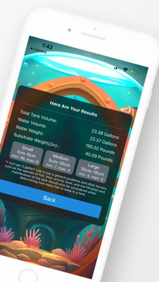 Introducing the ultimate fish tank calculator app, designed to help you maintain a healthy and thriving aquatic ecosystem. Whether you're a seasoned fish keeper or just starting out, this app is an essential tool for calculating the right amount of water, substrate, and fish for any tank size.