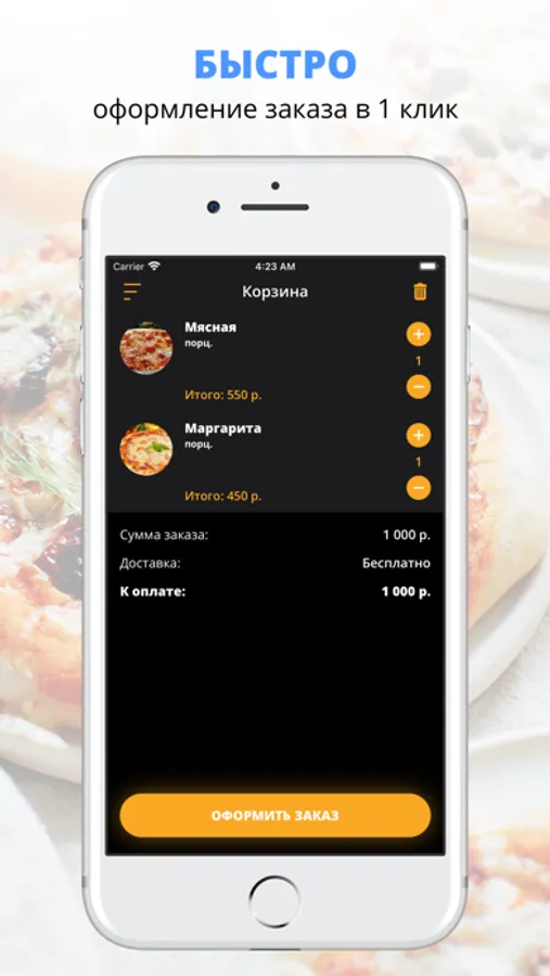 Скачивайте наше приложение, оформляйте заказ и наслаждайтесь любимой едой, где бы Вы ни были! Приятного аппетита!