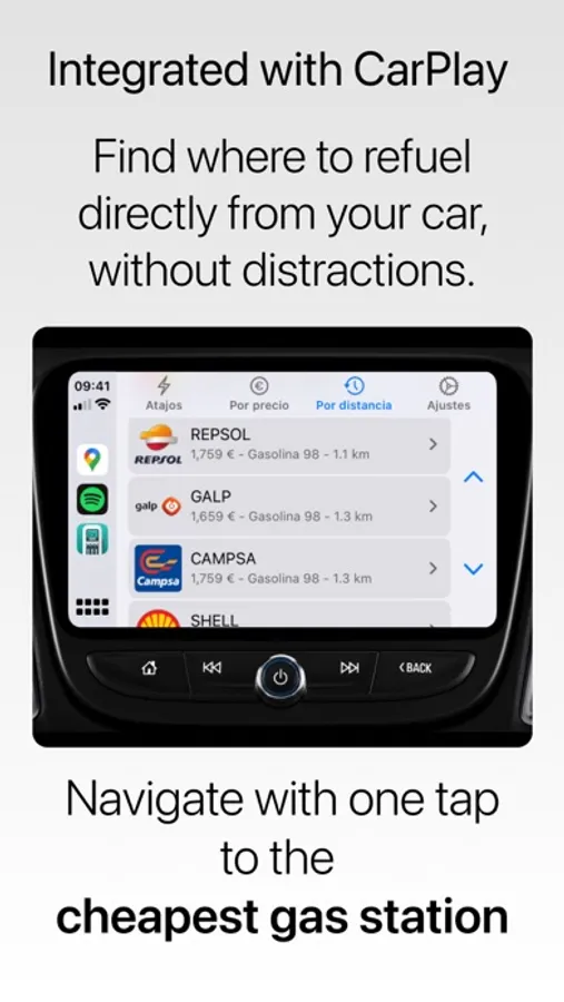 KilGas is the only app in the industry that offers full support for Apple CarPlay, so you can use all of its features directly from your car's screen. Navigate to the best prices without distractions, keeping your eyes on the road and your hands on the wheel.
