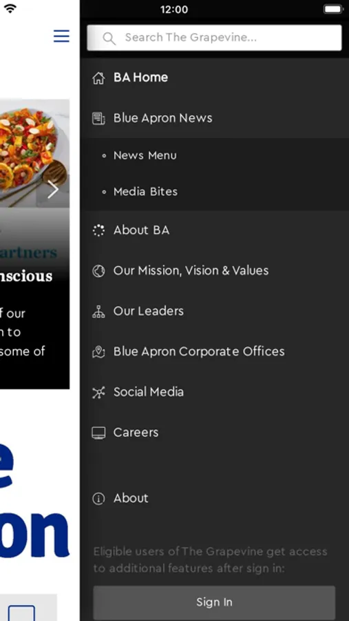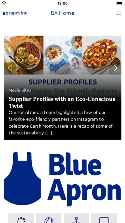 The Grapevine is an app designed to allow all interested parties the opportunity to learn more about Blue Apron, access helpful resources, and join us as we spark discovery, connection, and joy through cooking.