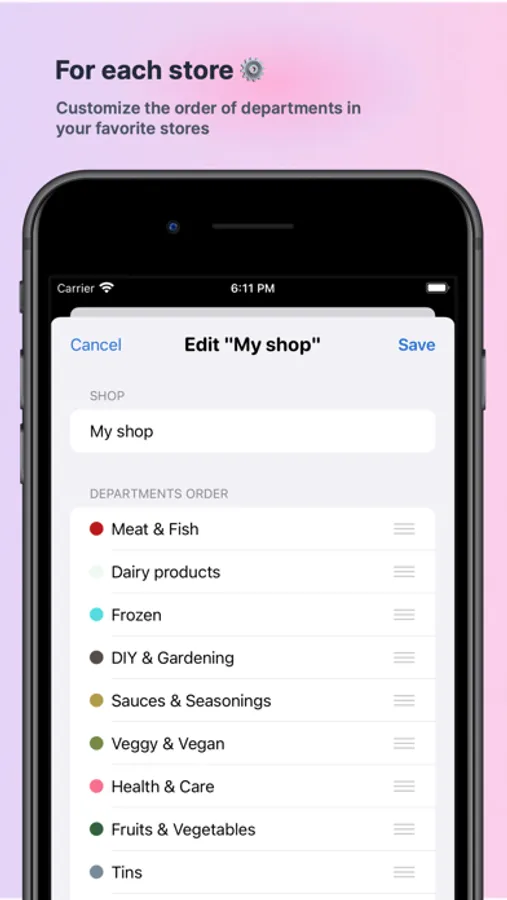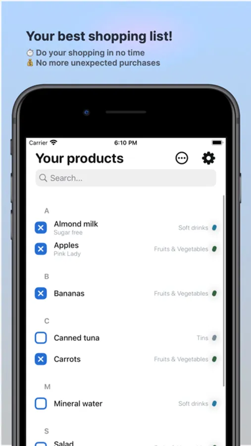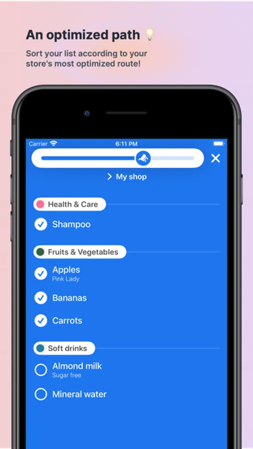 Once you've prepared your list, activate the "Live" mode, select the right store, and your products will be presented to you in the desired order!