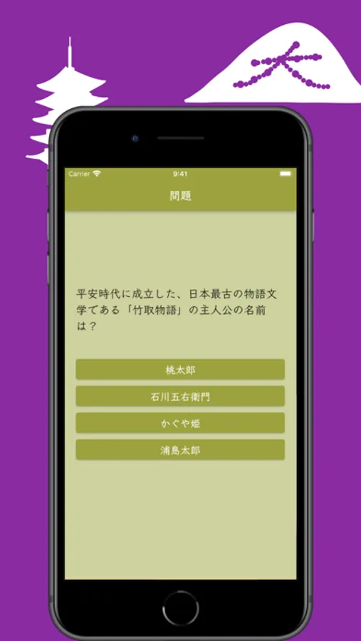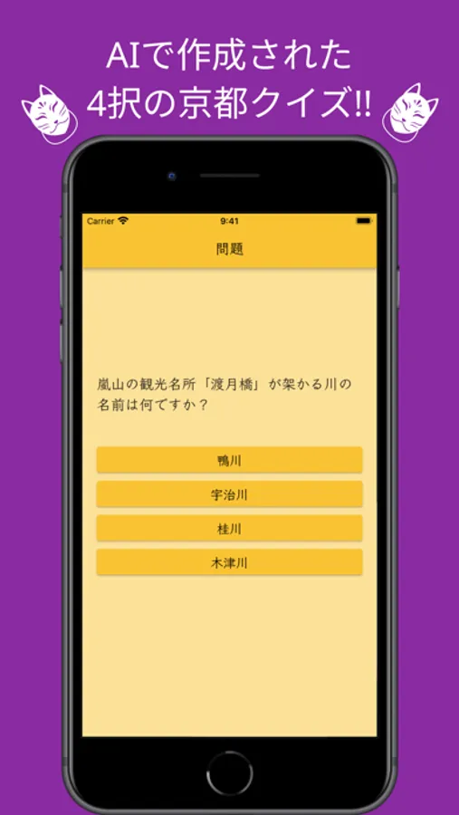 京都AIクイズは、AIによって作成された京都に関する4択問題を解くアプリです。