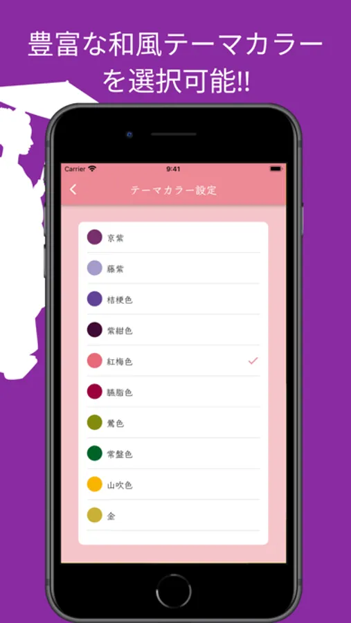 また、アプリのテーマカラーとフォントは豊富な和風デザインから選択できます。