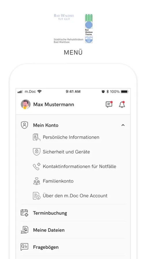 Die Bad Waldsee Reha App ist Ihr digitaler Klinik-Begleiter. Sie begleitet sie vor, während und nach Ihrem Aufenthalt in unserer Klinik und gestaltet ihn noch angenehmer.