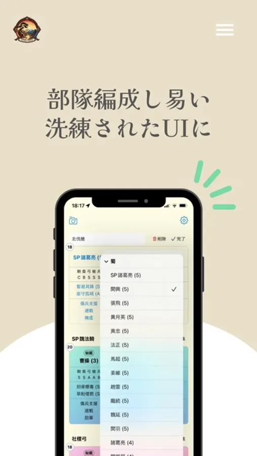部隊編成がし易くなるよう無駄な動きや要素を可能な限り減らし、洗練されたUIで部隊編成をお楽しみいただけます。