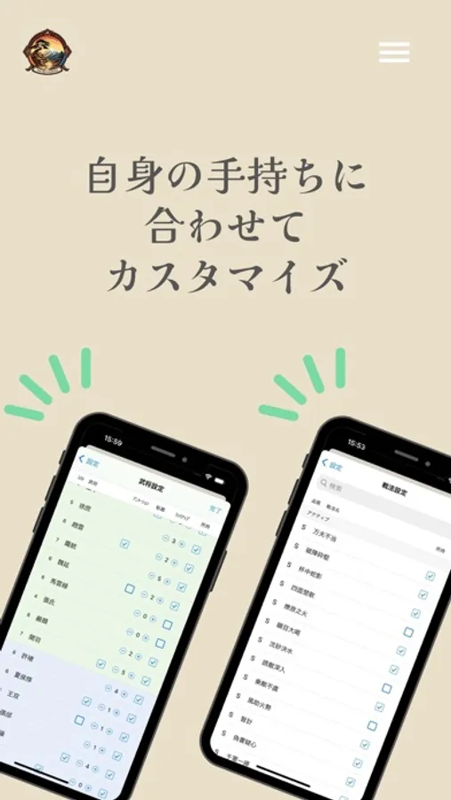 ユーザーご自身に合わせて武将ごとに以下の設定ができます。