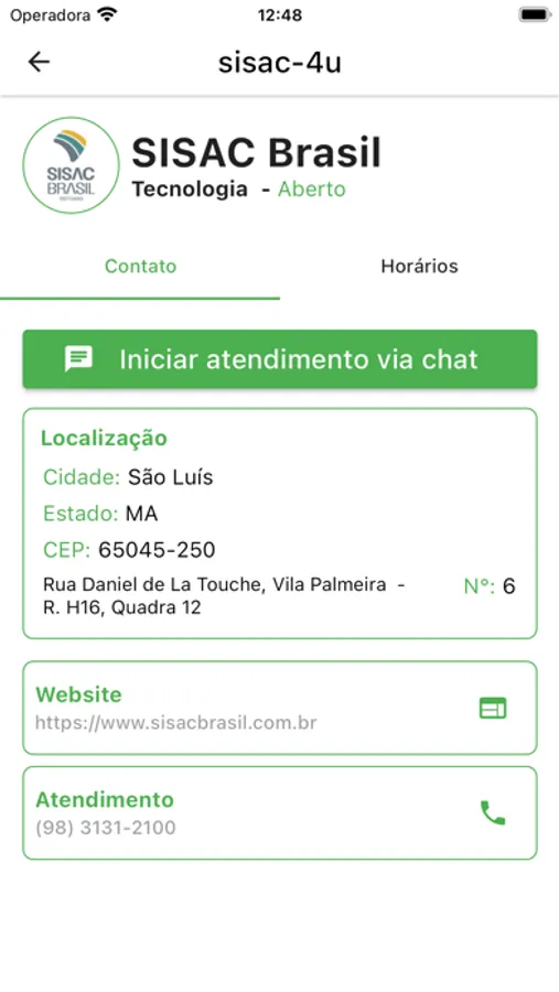 Plataforma de suporte via chat com empresas parceiras da SISAC.
