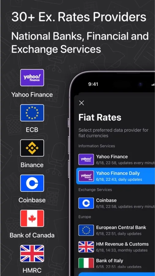 The Currencier offers the option to select their preferred rate provider. You can choose from reputable sources like Yahoo Finance, national banks, or other reliable financial institutions. This ensures that users have access to up-to-date and accurate exchange rates.