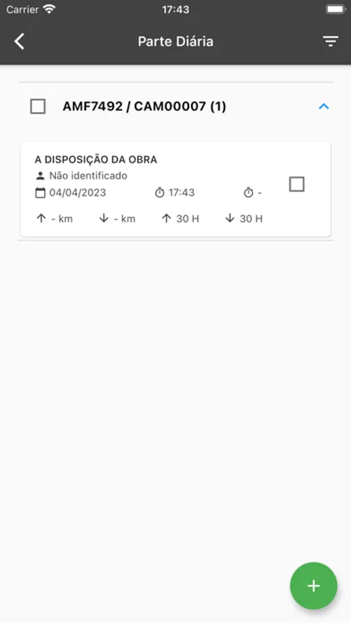 - KM/HORAS trabalhadas;