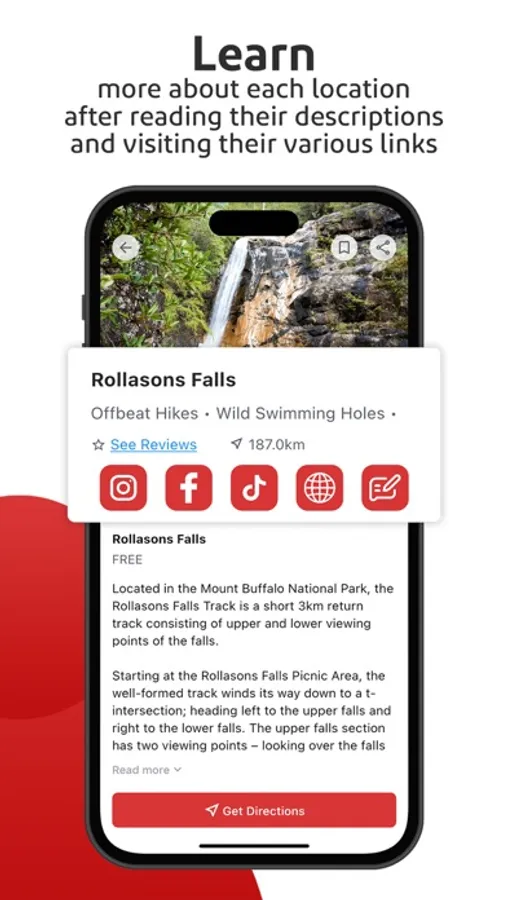 Each location marked includes a detailed description, along with photos and social media links so you have all the information you need in one place. For our accommodations & campgrounds you can even click the booking link to directly book a stay!