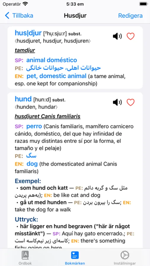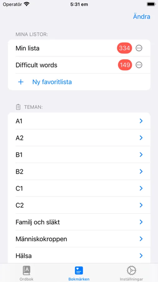 Med Lexin Offline kan du öva på att lyssna, läsa och uttala ord och fraser på svenska. fungerar även utan internetuppkoppling. Appen innehåller en stor samling av ord och fraser som är uppdelade i olika kategorier för att göra det lättare för dig att hitta det du behöver. Du kan söka på flera språk samtidigt. Du kan skapa och hantera flera separata listor med sparade ord och organisera dem i flera olika kategorier eller ämnen, och hålla din inlärning mer strukturerad än tidigare. Du har tillgång till fördefinierade tematiska ordlistor där ord är uppdelade i kategorier som mat, kläder, natur och mycket mer. Dessutom kan du välja ordlistor uppdelade efter olika nivå, från nybörjare (A1) till avancerad (C2) enligt *Kelly-frekvensordlista.
