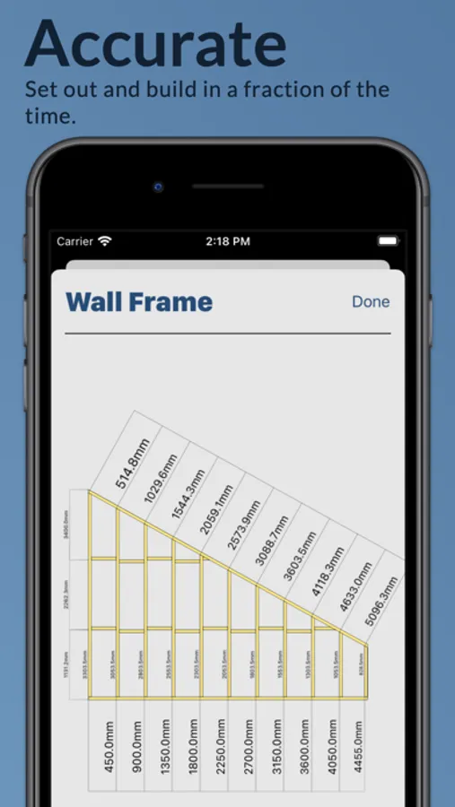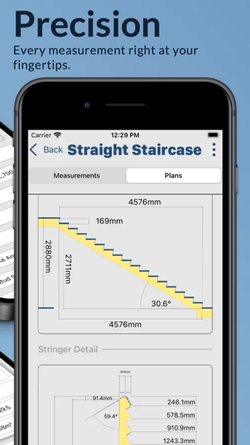 Unleash the potential of Buildr's interactive wall framing and staircase builder functions. With a few taps, you have precise measurements and visual renderings of your rake wall or staircase project. This unparalleled accuracy eliminates guesswork, reduces waste, and ensures your project meets all your specifications and standards.