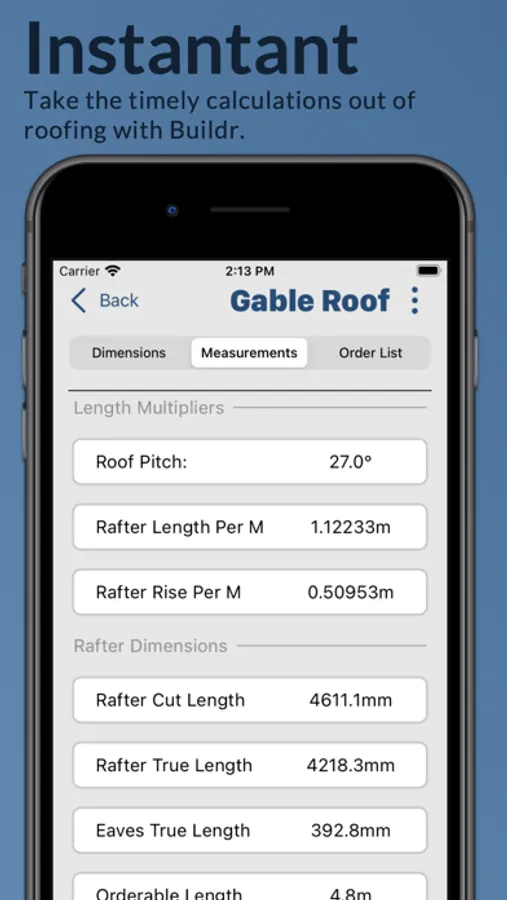 Built with a comprehensive suite of functions, Buildr simplifies complex construction math. Whether you're planning a roofing project, designing a staircase, or dealing with cubic and square meter tallies, our tool does the heavy lifting for you. Our user-friendly interface allows you to navigate the app with ease, ensuring each job becomes faster, and more efficient.