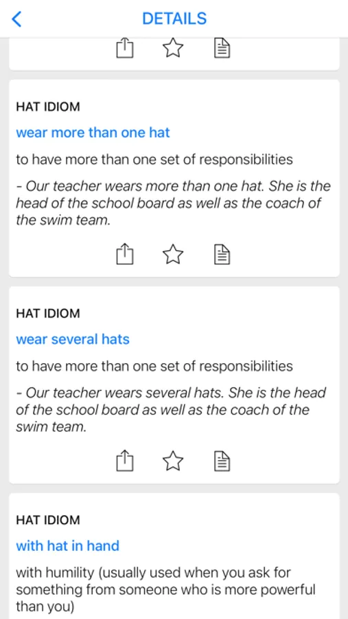 You can save, take notes and share with friends idioms you like. The app is suitable for English language learners, as well as anyone looking to improve their understanding and use of idiomatic expressions in everyday communication.