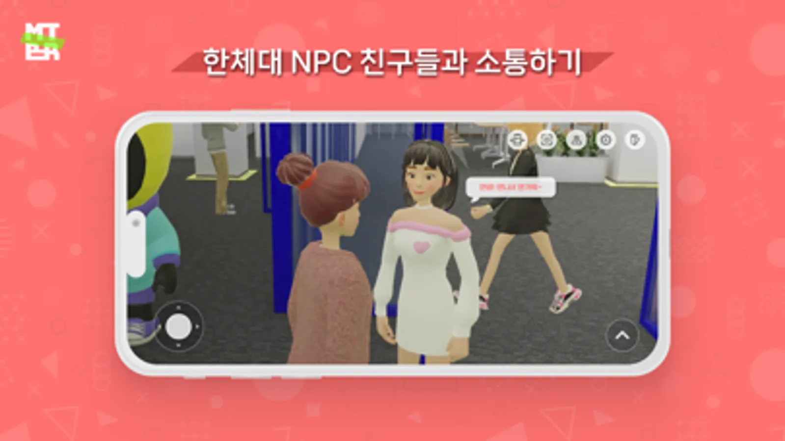 메타브러리 곳곳에 있는 한체대 NPC 친구들에게 말을 걸어보세요!