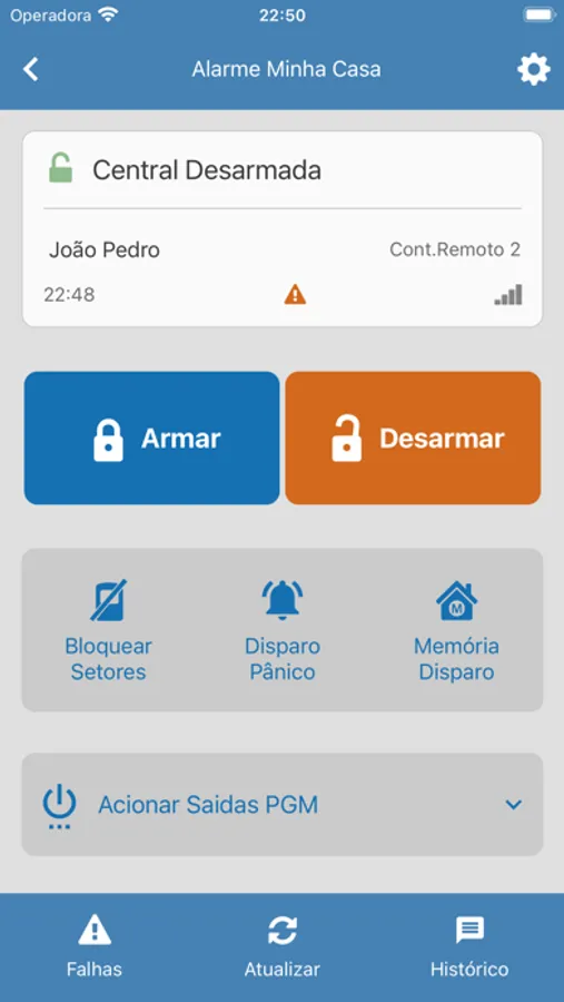 HotSpot: permite acessar as configurações da central via browser diretamente do aplicativo, estando na mesma que a central.