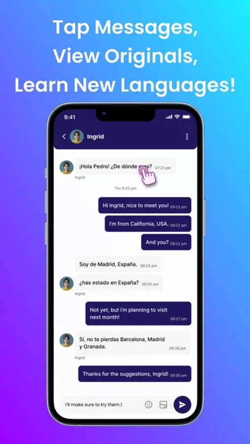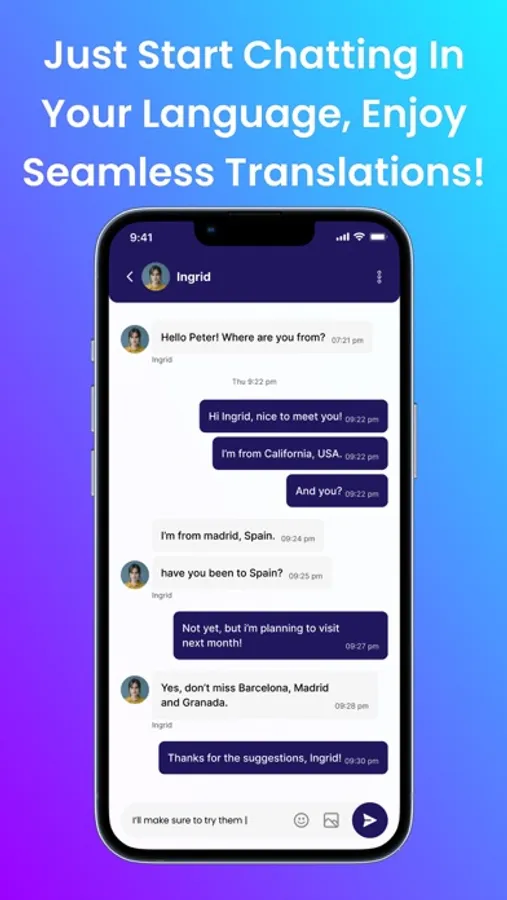 • All-in-One Messaging: Text and converse as you would on other messaging platforms, but with the added power of instant translations.