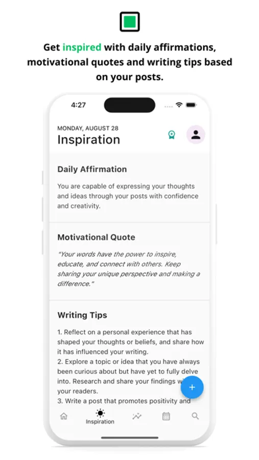 Enjoy daily affirmations, motivational quotes, and writing tips personalized to align with your posts.