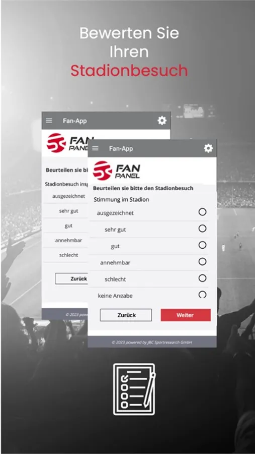 Sportresearch surveys fans on behalf of the 36 professional clubs in the Bundesliga and 2nd Bundesliga. The results are evaluated anonymously. Sportresearch is a market research institute that adheres to the code of conduct of German market and social researchers. If you have any questions, please contact us at info@sportresearch.de!