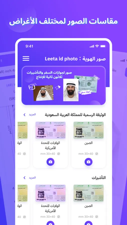 لا يمكن العثور على حجم صورة المستند المطلوب ؟ [ صور الهوية:Leeta id photo] يوفر مئات المستندات. فيما يلي مثال على حجم الصورة في التطبيق.
