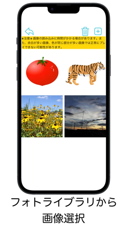 ①「画像登録」→フォトライブラリから画像を取り込む。