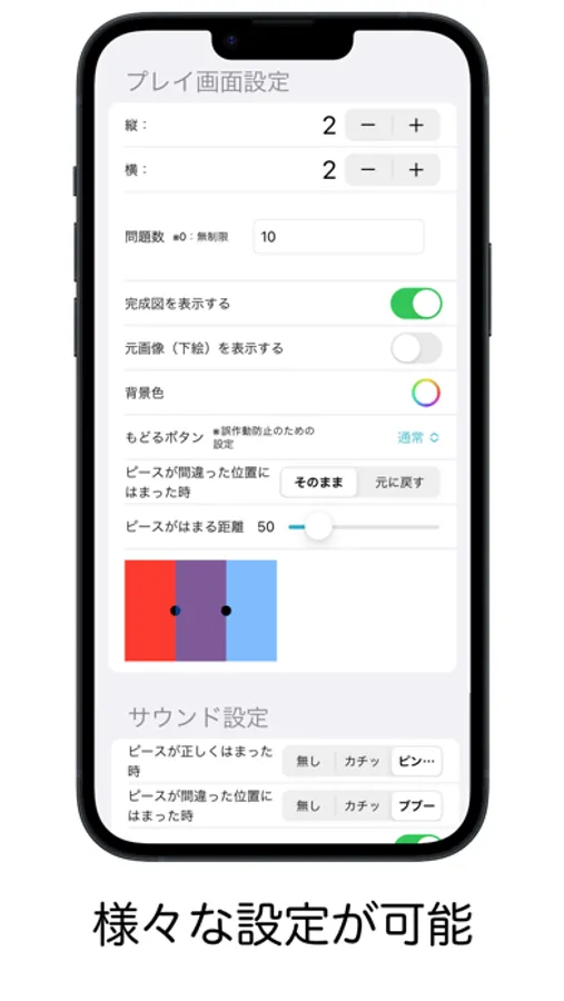 ②「設定」→幼児児童生徒の実態に応じて分割数、フィードバック等を調整する。