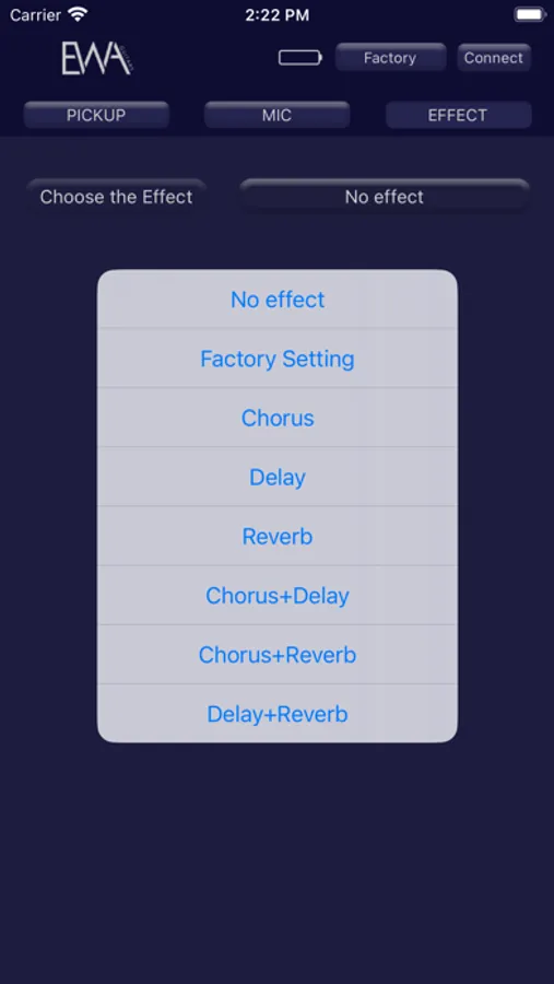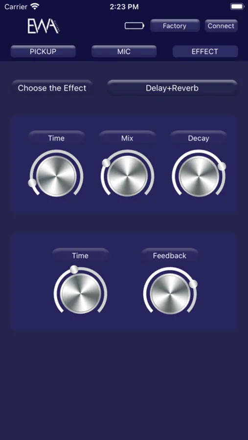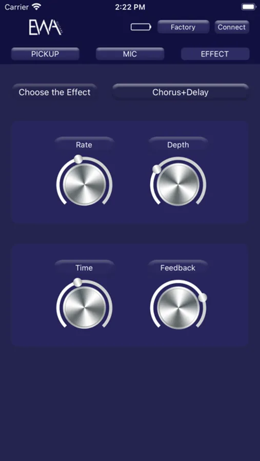 By using the APP, user can control the pickup after connecting with the Bluetooth(BT), Dual BT implements the background music and the volume control both of Pickup and Microphone, the system holds several bands EQ, handling three effects like Chorus, Reverb and Delay, all Effects can be combo freely, so you can adjust them in details.