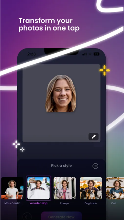 Say hello to an all-new, magical photo creator. Enchant your photos through AI-generated photo backgrounds, to make every photo true to your personality.
