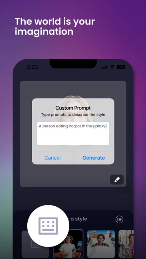 Got an idea of your own? Transform your photo using a customised prompt – our AI will generate it for you!