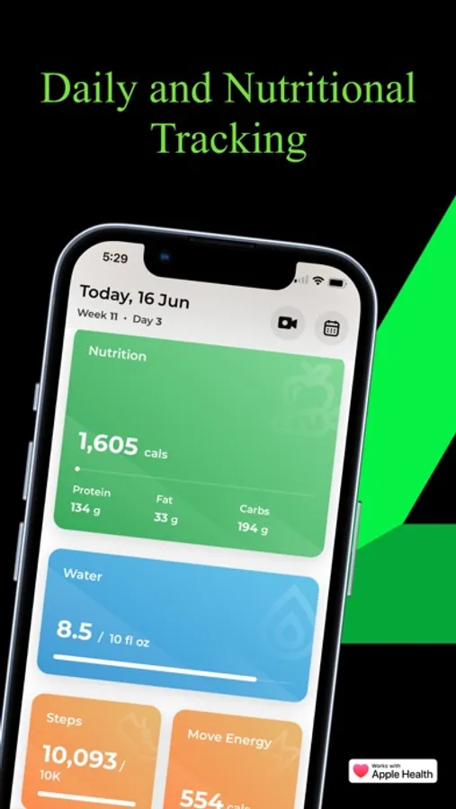 The app integrates with Apple Health to show your daily activity - distance, steps, active energy, and flights to help you better achieve your goals.