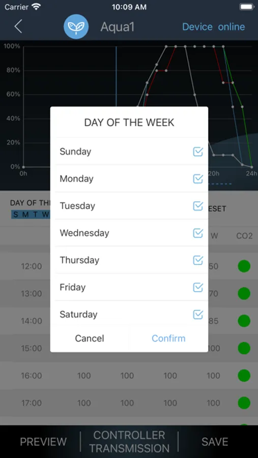 ○ 일주일 기준으로 조명이 작동 되는 요일을 선택 할 수 있습니다.