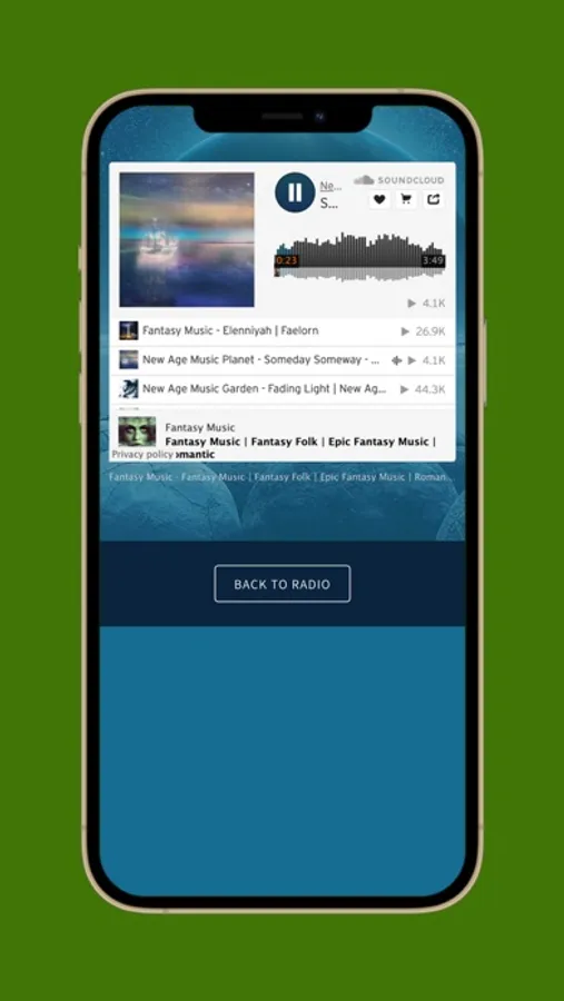 A free music streaming app where you can listen to the finest relaxing new age, ambient, fantasy music, electronic music and more. Head to our themed playlists and listen to meditation music or relaxing music playlists for more defined listening. Watch stunning new age videos. On our 24/7 radio player, beautiful album art is displayed with links to Apple Music so you can buy the current playing artist.