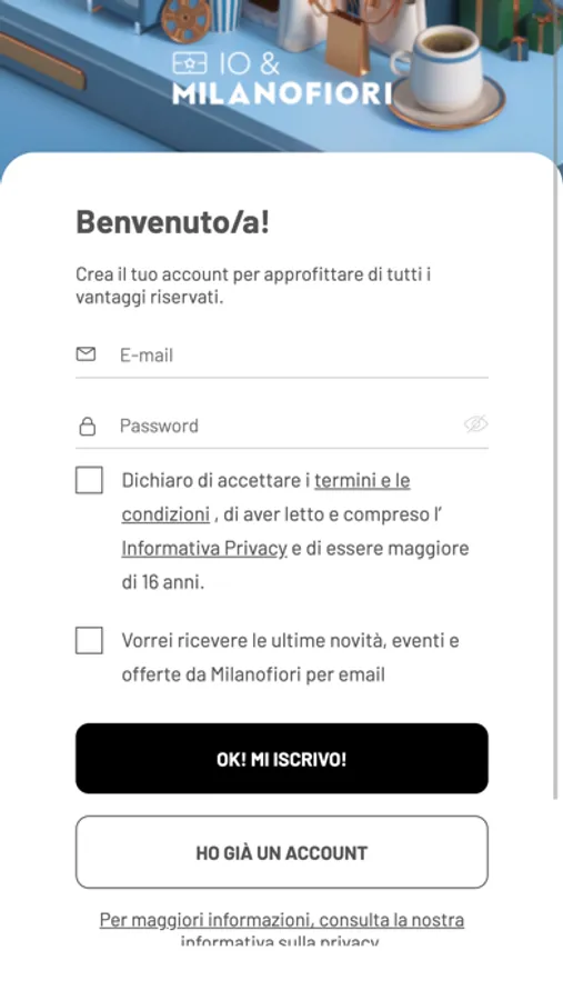 Scarica l'app, ottieni vantaggi, offerte e servizi esclusivi dedicati a te, da MILANOFIORI o e dai nostri partner. Puoi impostare i tuoi interessi e brand preferiti per approfittare di proposte esclusive e personalizzate.