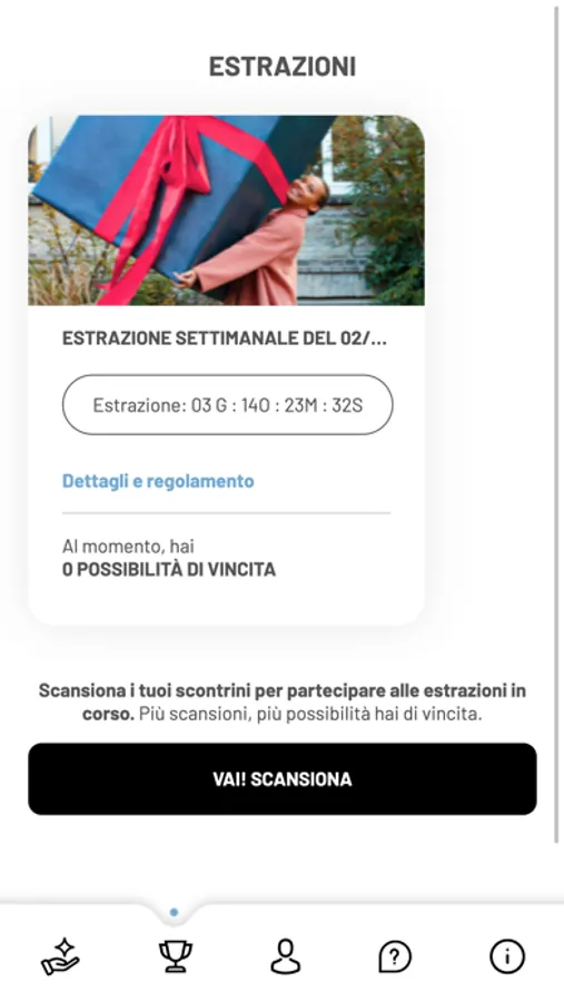 E non finisce qui… grazie alla nostra app, con le tue sessioni di shopping, hai un altro grande privilegio: scansiona i tuoi scontrini e sei automaticamente inserito fra i candidati delle estrazioni settimanali e mensili per aggiudicarti regali superlativi. Ricorda che più scontrini scansioni, più chances hai di vincere!