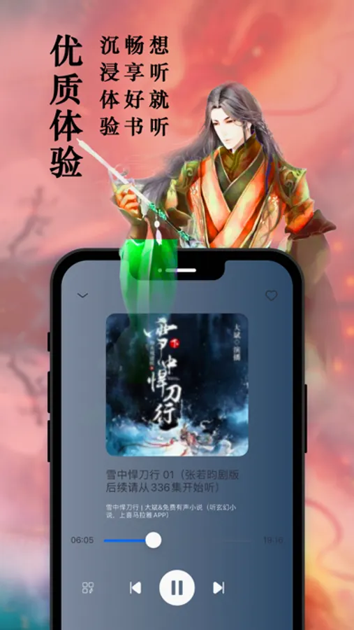 【有声听书】:细腻的人声朗读,提供多种有声内容,解放双眼,随时听!